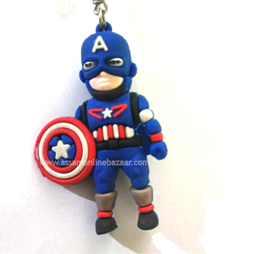 Imported 3D Captain America keychain made from durable rubber with detailed design. Perfect for keys, bags, gifting, and superhero fans.