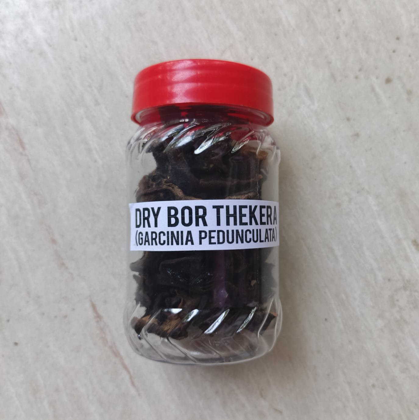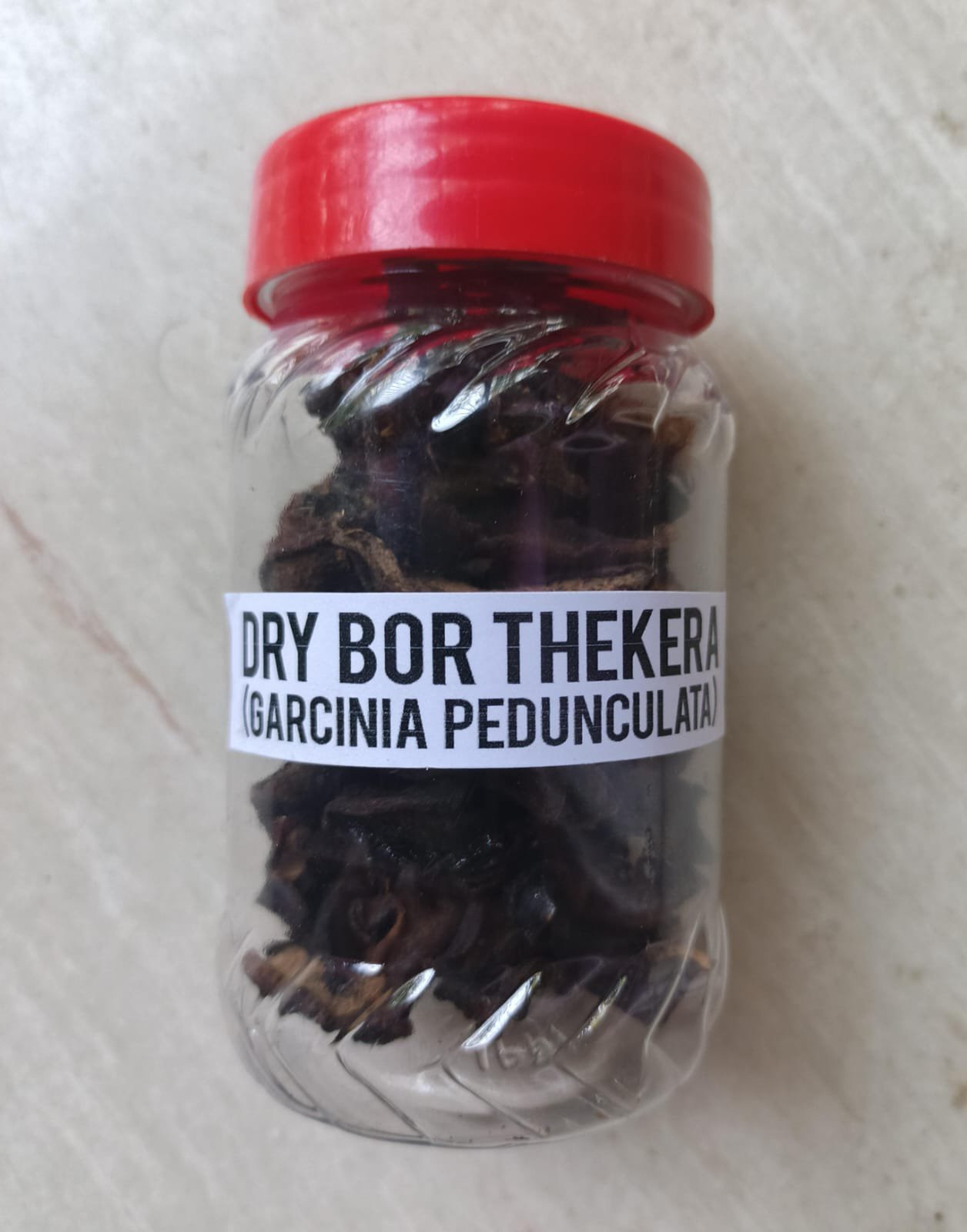 Dry Bor Thekera Tenga** (*Garcinia pedunculata*), commonly known as *Thekera* in Assam, is a traditional dried fruit widely used in Assamese cuisine. It is known for its sour taste and is often added to dishes to enhance flavor. Thekera is closely related to kokum and is a key ingredient in many Assamese homes, especially during the off-season when fresh thekera is unavailable.